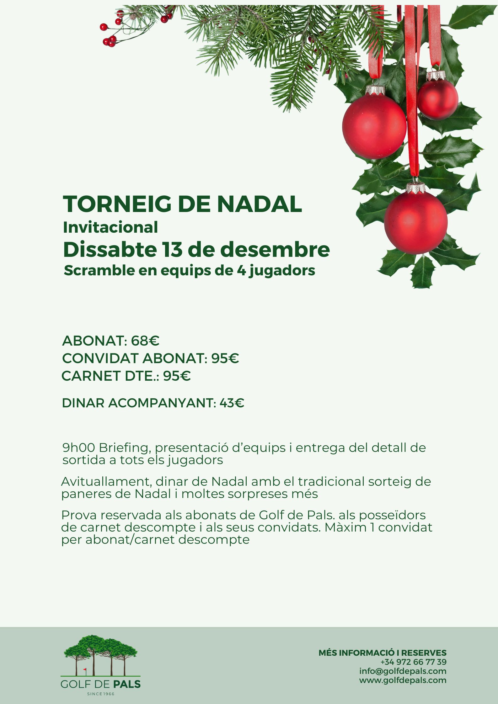 El Torneig de Nadal està reservat als abonats del Golf de Pals / jugador amb carnet descompte i als seus convidats.